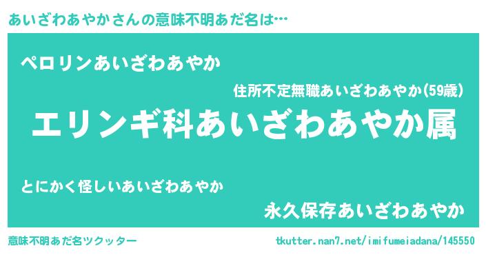 | ヘコむあだ名 | 『あいもー』『あいざわあやか(震え声)』 |