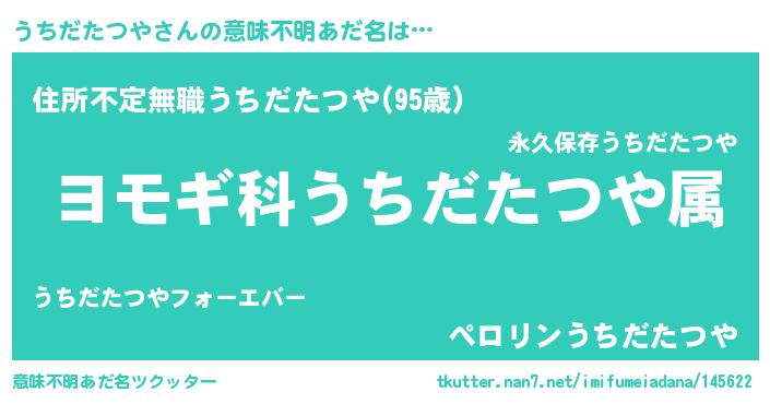 | 男性向けラノベタイトル風あだ名 | 『うちだたつや~年齢イコール彼女いない歴の魔法使い~』 |