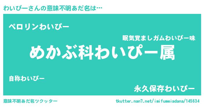 | 料理風あだ名 | 『わいぴーごはん』 |