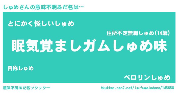 | ヒーロー風カッコイイあだ名 | 『天空の使者しゅめ』『幻影騎士シュ』 |