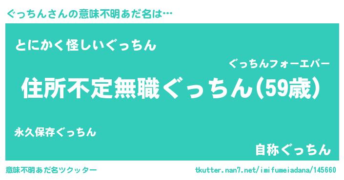| 男性向けラノベタイトル風あだ名 | 『この素晴らしい世界にぐっちんを!』 |