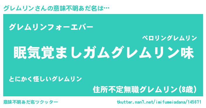 | 女子向けラノベタイトル風あだ名 | 『グレムリン恋絵巻』 |