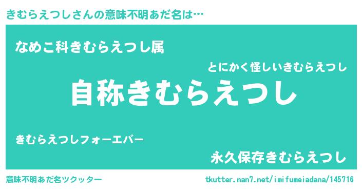 | 女子向けラノベタイトル風あだ名 | 『きむらえつしなんてお断りですっ。』 |