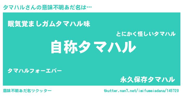 | 女子向けラノベタイトル風あだ名 | 『闇のタマハル』『タマハル恋絵巻』 |