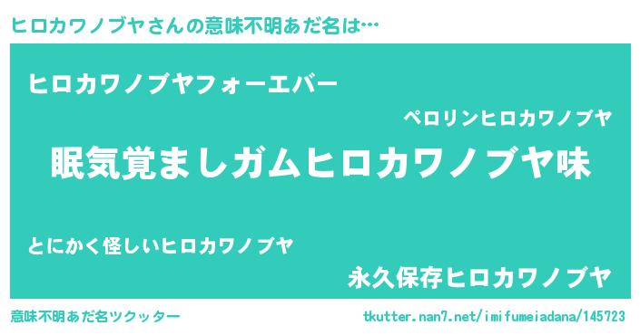 | 女子向けラノベタイトル風あだ名 | 『ヒロカワノブヤ恋絵巻』 |