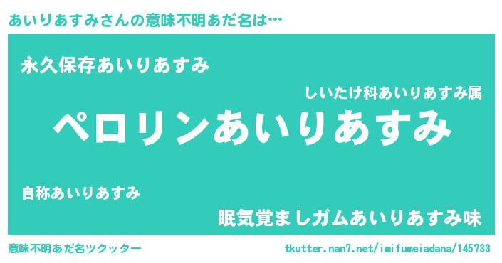 | 胡散臭い通販商品みたいなあだ名 | 『必ず成功するブレスレット…その名も「あいりあすみ」』 |