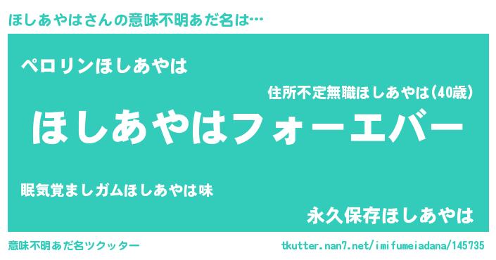 | 胡散臭い通販商品みたいなあだ名 | 『世界が平和になる高級そうな絵画…その名も「ほしあやは」』 |