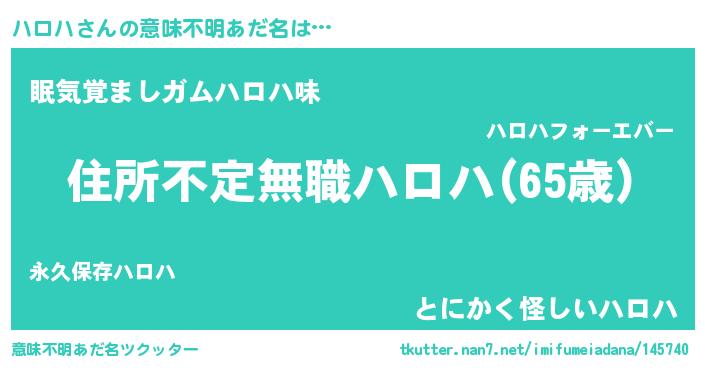 | 男性向けラノベタイトル風あだ名 | 『この素晴らしい世界にハロハを!』 |