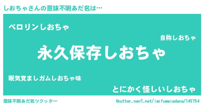 | 男性向けラノベタイトル風あだ名 | 『しおちゃという概念が存在しない退屈な世界 』 |