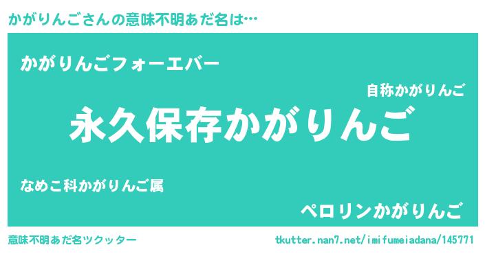 | ヘコむあだ名 | 『かがりんご(遠い目)』『豆乳』 |