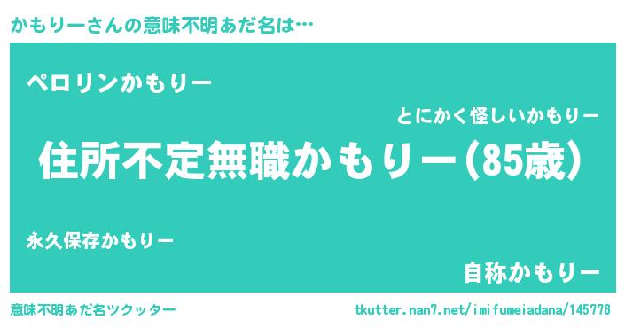 | 男性向けラノベタイトル風あだ名 | 『この素晴らしい世界にかもりーを!』 |
