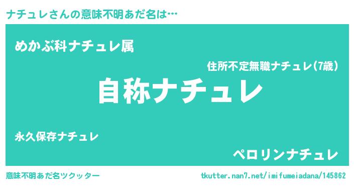 | ヒーロー風カッコイイあだ名 | 『サイバー戦士ナチュレ』『仮面ナチダー』 |