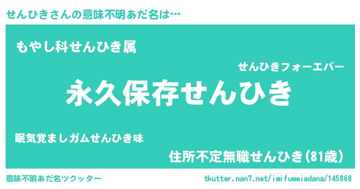 | ヘコむあだ名 | 『せんひき(小並感)』『酢こんぶ』 |