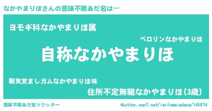 | 男性向けラノベタイトル風あだ名 | 『うちのなかやまりほが世界を掌握している!』 |