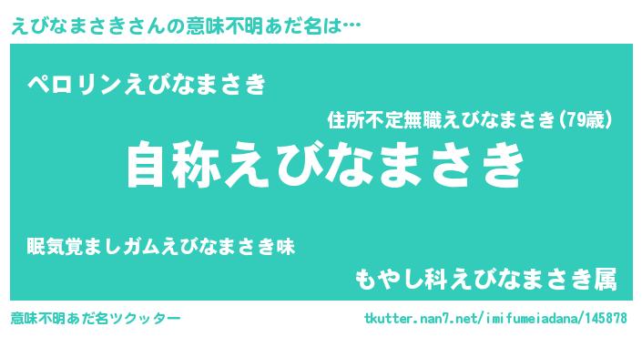 | 男性向けラノベタイトル風あだ名 | 『Re:えびなまさきから始める異世界生活』 |