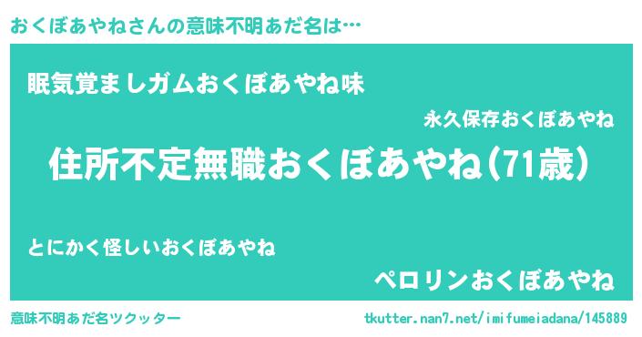 | 胡散臭い通販商品みたいなあだ名 | 『ハリウッド女優が絶賛した世界で10本だけ現存している希少なブランデー…その名も「おくぼあやね」』 |