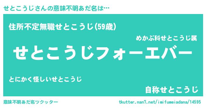 | 女子向けラノベタイトル風あだ名 | 『せとこうじの雑貨屋さん』 |