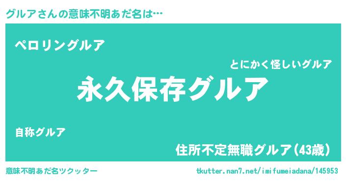 | ヘコむあだ名 | 『グルア(小並感)』『グルにゅー』 |