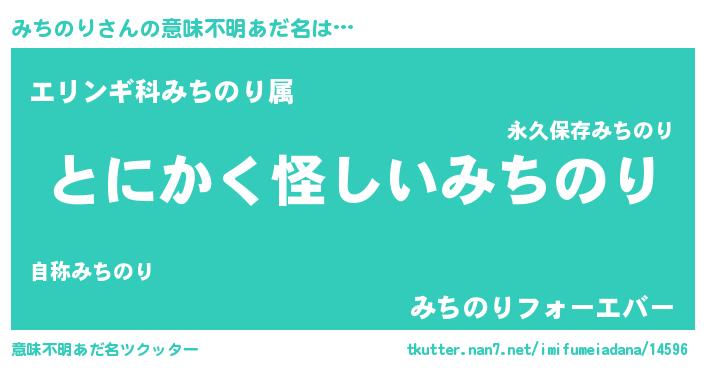 | 女子向けラノベタイトル風あだ名 | 『みちのりの卵を拾いまして』 |