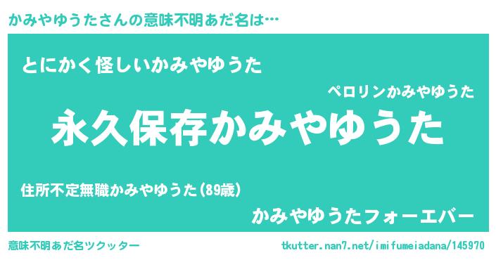 | ヘコむあだ名 | 『かみやゆうた(苦笑)』『かみっちょ』 |