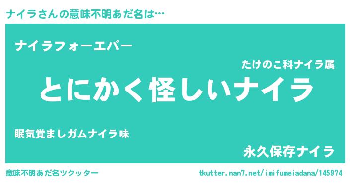 | ヒーロー風カッコイイあだ名 | 『黄金騎士ナイ』『ウルトラナイラマン』 |