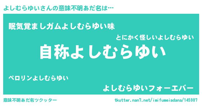 | 肩書あだ名 | 『よしむらゆい閣下』『よしむらゆい機長』 |