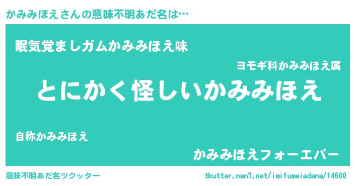| ポケモン風あだ名 | 『ヒカミミホエ』『カックウザ』 |