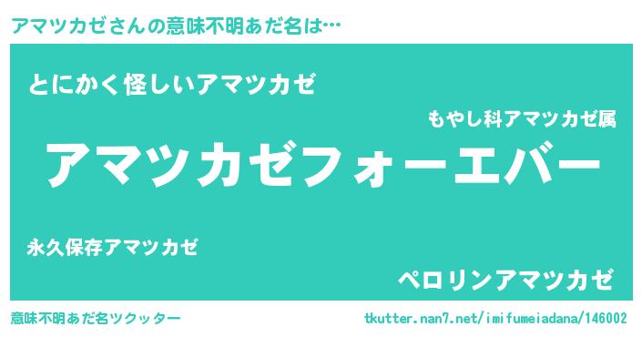 | 欧米人風あだ名 | 『アマツカゼクリステル』 |