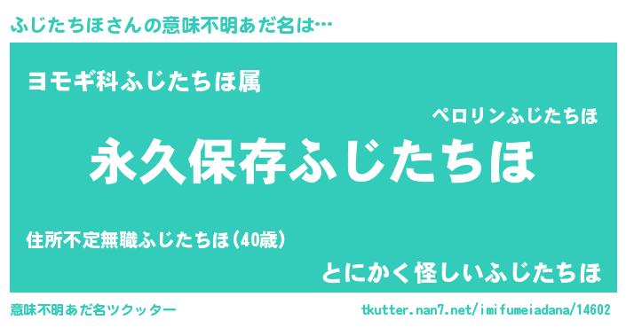 | 男性向けラノベタイトル風あだ名 | 『ふじたちほという概念が存在しない退屈な世界 』 |