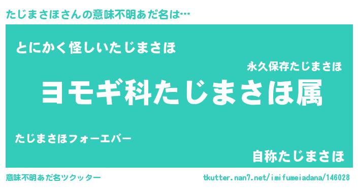 | 男性向けラノベタイトル風あだ名 | 『たじまさほ~年齢イコール彼女いない歴の魔法使い~』 |
