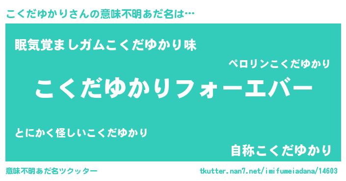 | ファンタジー風あだ名 | 『エターナルコクダユカリー』 |