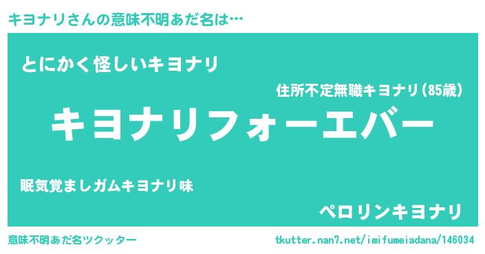 | 欧米人風あだ名 | 『キヨナリ・ステッグマイヤー』 |