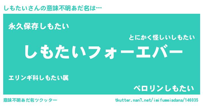 | ヘコむあだ名 | 『豆乳』『しもたい(苦笑)』『しもを』 |