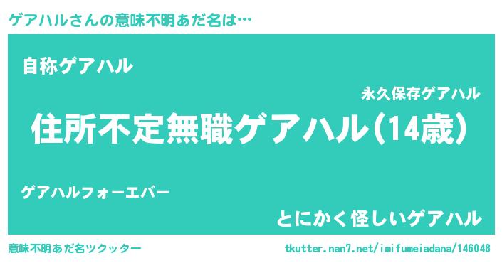 | ヘコむあだ名 | 『ゲア太郎』『ゲアハル(小並感)』 |