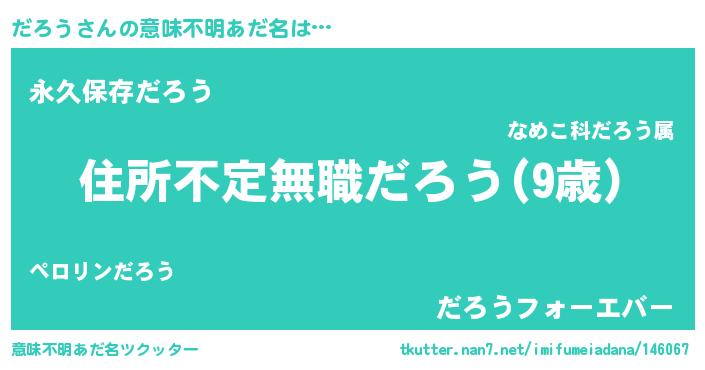 | 男性向けラノベタイトル風あだ名 | 『この素晴らしい世界にだろうを!』 |