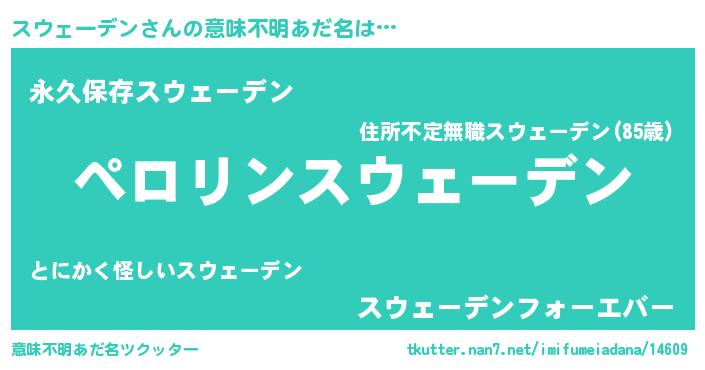 | 男性向けラノベタイトル風あだ名 | 『スウェーデンアートオンライン』 |