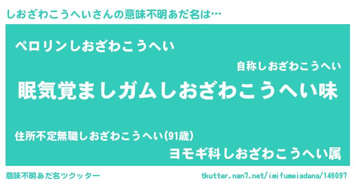 | 胡散臭い通販商品みたいなあだ名 | 『モンドセレクションを受賞したイリジウム磁石…その名も「しおざわこうへい」』 |