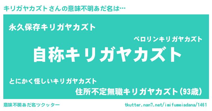 | ヘコむあだ名 | 『キリガヤカズト(遠い目)』『キリにー』 |