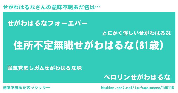 | 男性向けラノベタイトル風あだ名 | 『この素晴らしい世界にせがわはるなを!』 |