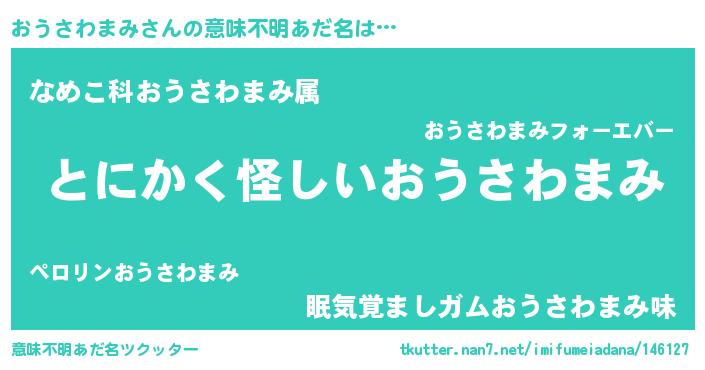 | 欧米人風あだ名 | 『ウサインおうさわまみ』 |