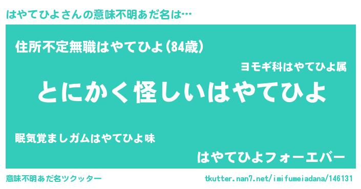 | ポケモン風あだ名 | 『ヒハヤテヒヨ』『メロハッヤ』 |