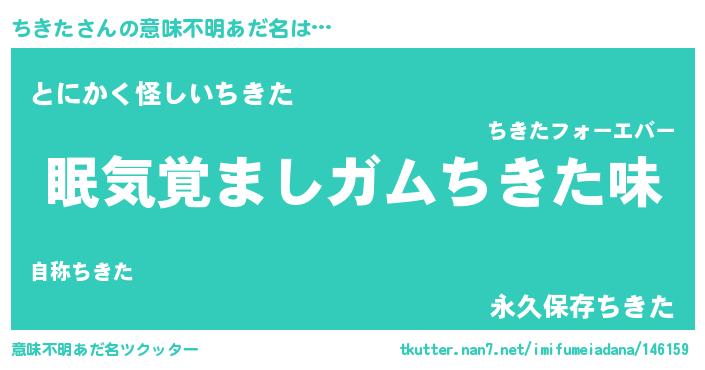 | 男性向けラノベタイトル風あだ名 | 『ちきたに滅ぼされるだけの簡単なお仕事です』 |