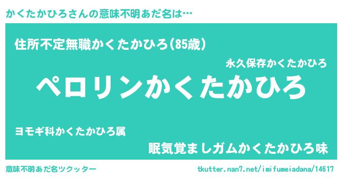 | ヘコむあだ名 | 『かくっふぃ~』『かくたかひろ(遠い目)』 |