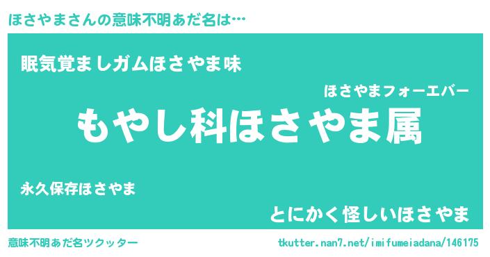 | 男性向けラノベタイトル風あだ名 | 『転生したらほさやまだった件』 |