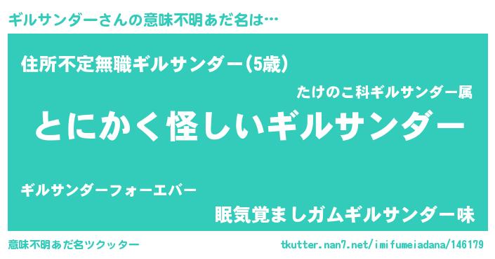 | 男性向けラノベタイトル風あだ名 | 『ギルサンダーの嫁は女の子じゃないと思った?』 |