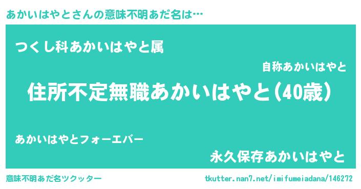 | 男性向けラノベタイトル風あだ名 | 『冴えないあかいはやとの育てかた』 |