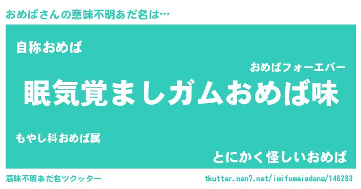 | 男性向けラノベタイトル風あだ名 | 『ノーゲーム・ノーオメバ』 |