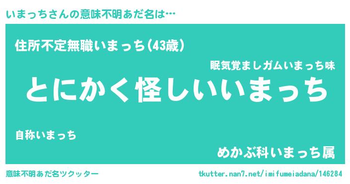 | 男性向けラノベタイトル風あだ名 | 『いまっちの嫁は女の子じゃないと思った?』 |