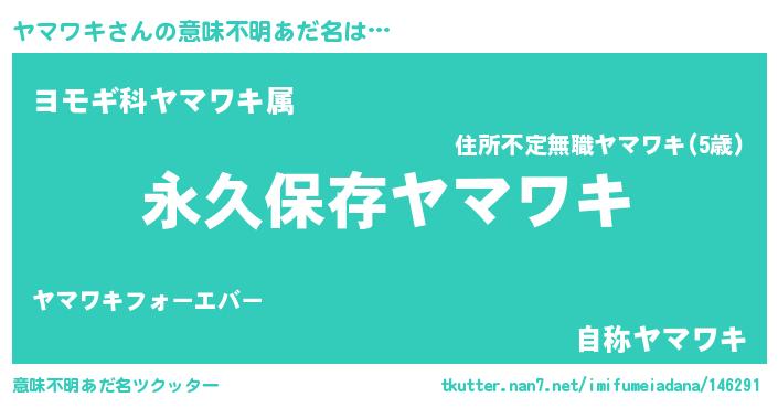 | 男性向けラノベタイトル風あだ名 | 『ヤマワキという概念が存在しない退屈な世界 』 |