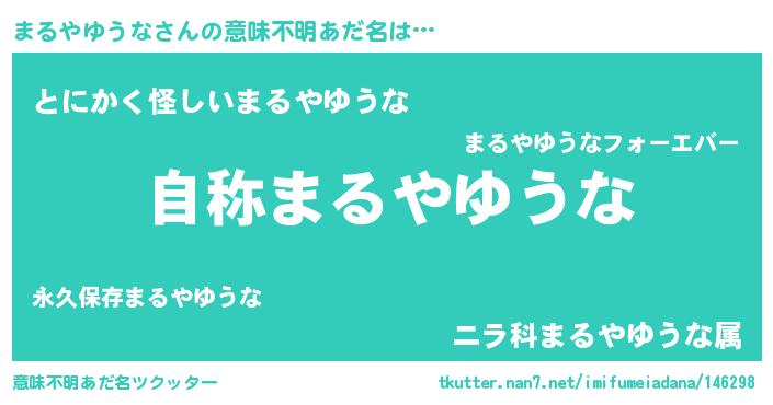 | 男性向けラノベタイトル風あだ名 | 『Re:まるやゆうなから始める異世界生活』 |